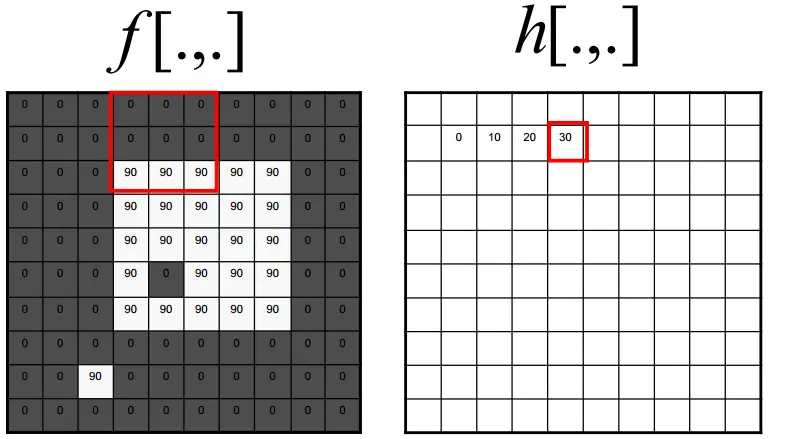 由于公式中用的是减号,在运算时,从boxFilter的右下角拿值。