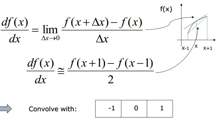 就是用1*3的卷积模版在图像上进行滑动,得到的输出值就df(x)/dx