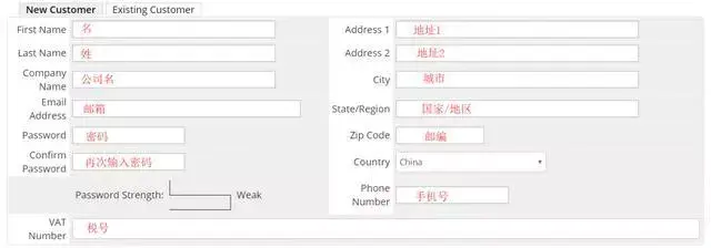 然后如图完善个人信息即可,使用拼音即可,其中公司名、地址2可以不用填写,国家选择中国之后税号也不用填写: