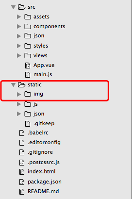第二步将所有的静态图片资源放在和src同级目录下的static文件夹下