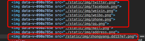 上面的红框都是这种方式,最下面的红框是用require的方式将图片引进来的(被当成模块被url-loader处理,加入了hash值)