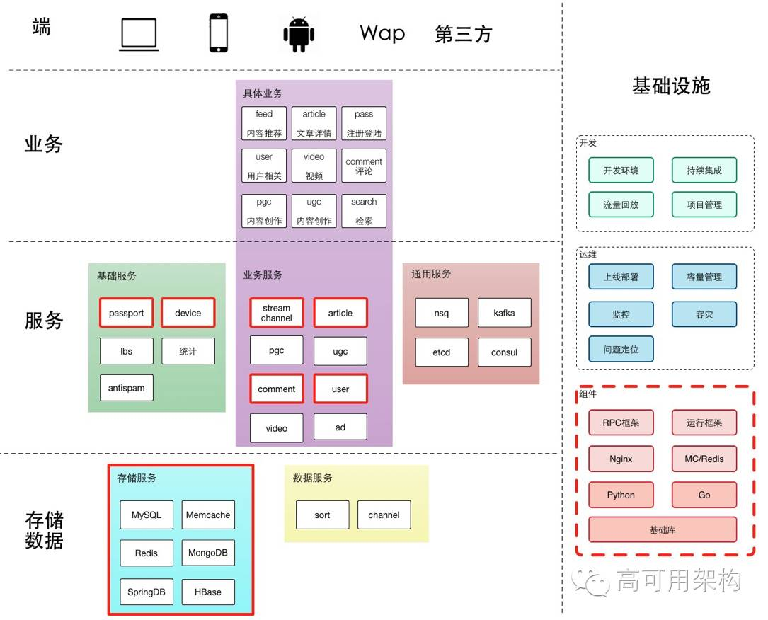 系统的分层比较典型。我们重点在基础设施,希望通过基础设施提高快速迭代、容灾和一系列的工作,希望各个业务团队能更快做业务上的迭代以及架构上的调整。