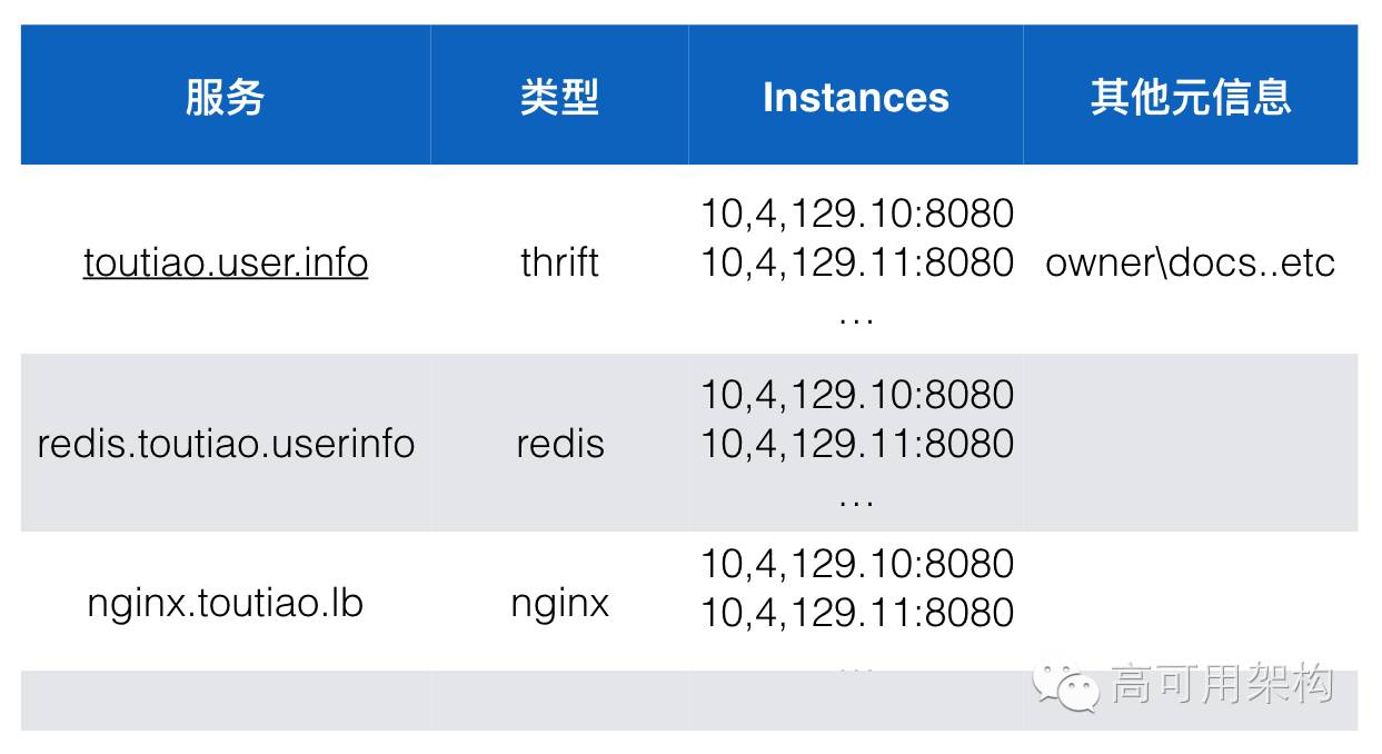 - 服务有唯一的标示、命名范:{产品线}.{子系统}.{模块} P.S.M,公司有很多部门,我们不希望部门之间沟通起来有差异,所以需要有全局规划去追溯它;