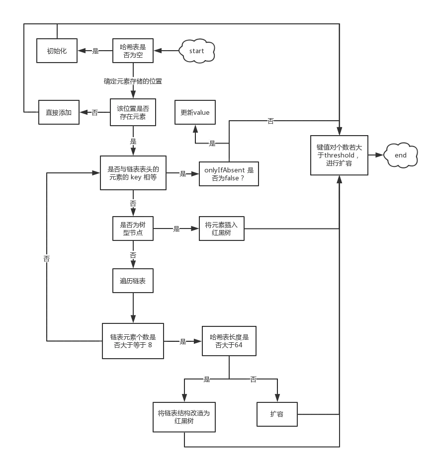 put 方法直接调用了 putVal 方法,这里我为大家加上了注释,可以配合下面的流程图一步步感受: