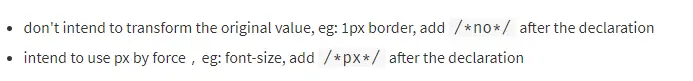即在css中使用/*no*/时不会将px转换成rem,使用/*px*/时会将css中的px转换成