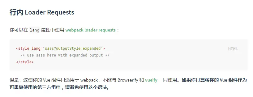 如果vue-loader是11.x的就需要配置{outputStyle:'expanded'},若vue-loader到12、13以后就不需要配置这个参数了