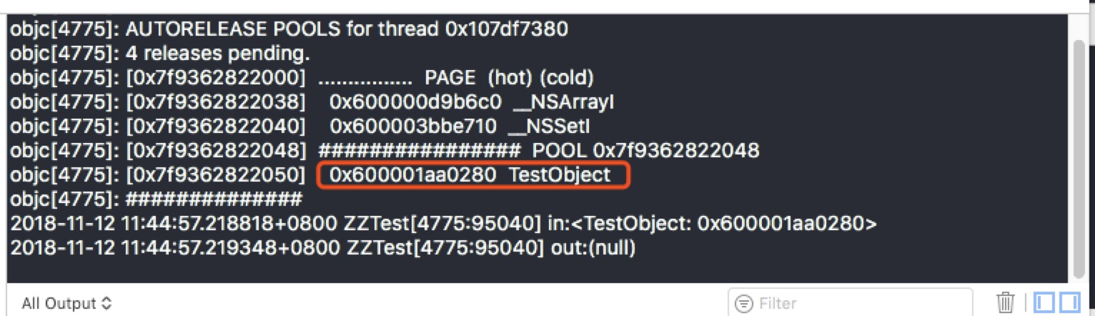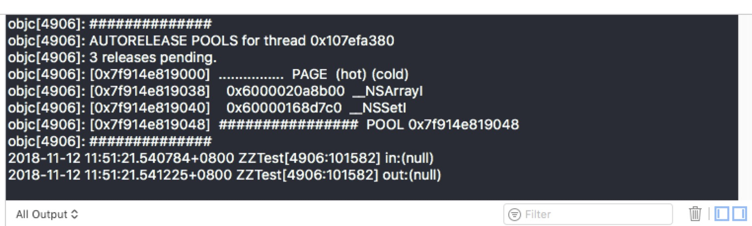 2018-11-12 19:20:55.447117+0800 ZZTest[13659:492278] >>>><NSObject: 0x6000009030d0>