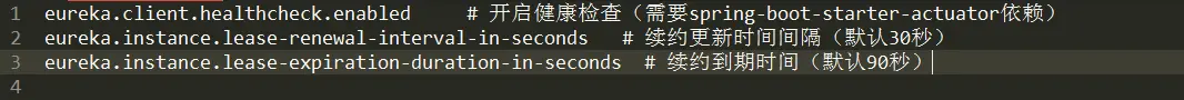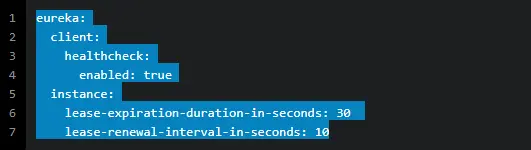 (2) Eureka Client端:配置开启健康检查,并按需配置续约更新时间和到期时间。