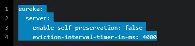 (1) Eureka Server端:配置关闭自我保护,并按需配置Eureka Server清理无效节点的时间间隔。