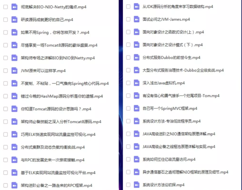 推荐一个交流学习群:697-57-9751 里面会分享一些资深架构师录制的视频录像:有Spring,MyBatis,Netty源码分析,高并发、高性能、分布式、微服务架构的原理,JVM性能优化这些成为架构师必备的知识体系。还能领取免费的学习资源,目前受益良多: