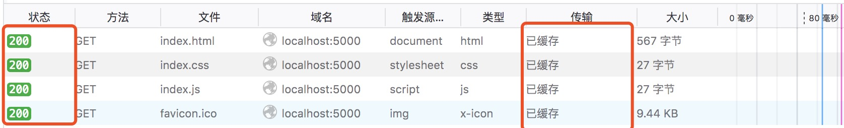 - favicon.ico:没有命中缓存,服务端获取资源