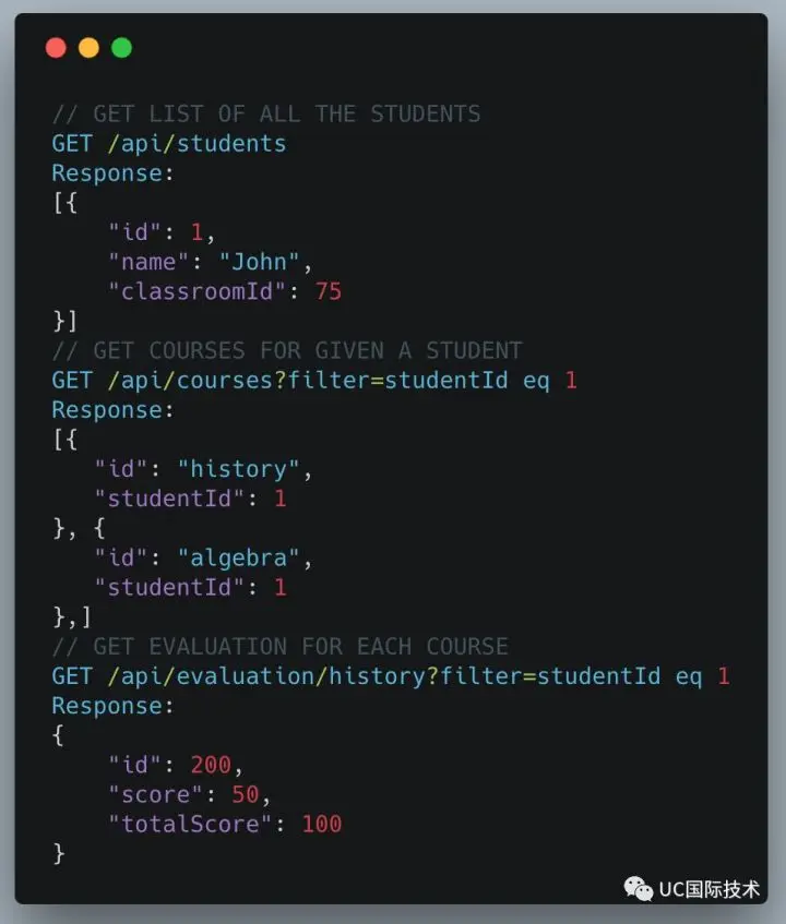 检索并计算属于同一教室中每个学生的平均分数,例子中教室 ID 为 75。每个学生可以在一年内参加一门或多门课程。以下 API 可用于检索所需数据。