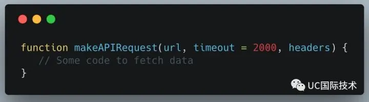 如果我们在调用 makeAPIRequest 函数时必须使用timeout的默认值,那么正确的语法是什么?