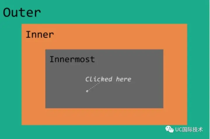 - Innermost div click 处理程序将 hello innermost 打印到控制台。