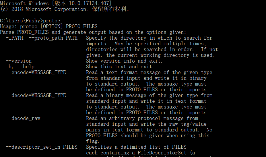 在命令行上输入protoc查看是否安装成功: