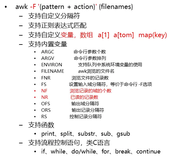 简单来说awk就是把文件逐行的读入,(空格,制表符)为默认分隔符将每行切片,切开的部分再进行各种分析处理。