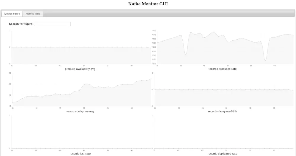 开始 Kafka Monitor的源代码可以从Github下载,基于Apache 2.0 授权协议。使用指南,设计文档和未来规划在README文件和项目wiki中可以查阅。我们很乐于听到你对该项目的反馈意见。当Kafka Monitor被设计用来作为,测试和监控Kafka部署情况的框架的时候,我们视线了一个基本的但是有用的测试,确保你能开箱即用。这些测试可以度量可用性,端到端时延,消息丢包率以及消息复制速率,通过运行一个生产者和一个消费者,它们使用同一个主题生产/处理消息。你可以在终端看到这些指标,基于HTTP GET请求、程序化地获得它们的值,甚至随着时间查看它们的值,通过一个简单(快速启动)的图形界面,如下面的截图所示。关于如何运行测试、查看指标的详细介绍内容请参阅项目网站。