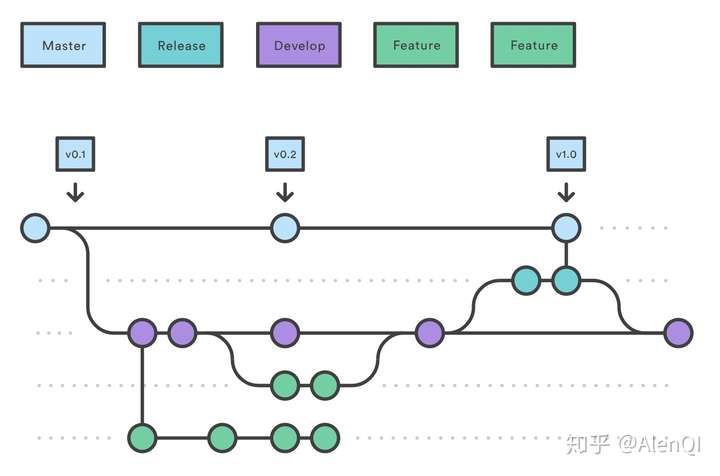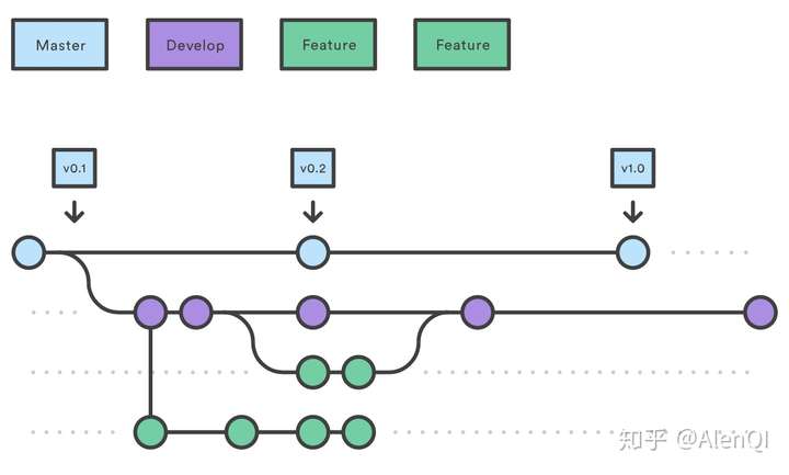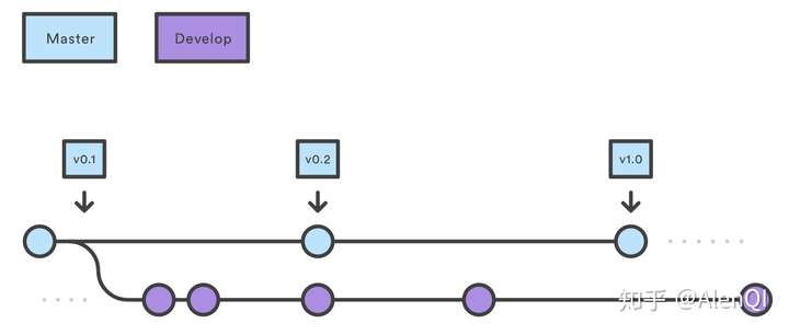和单独的 master 分支不同,这种工作流使用两个分支来记录项目历史。master 分支储存官方发布历史,develop 分支用来整合功能分支。同时,这还方便了在 master 分支上给所有提交打上版本号标签。