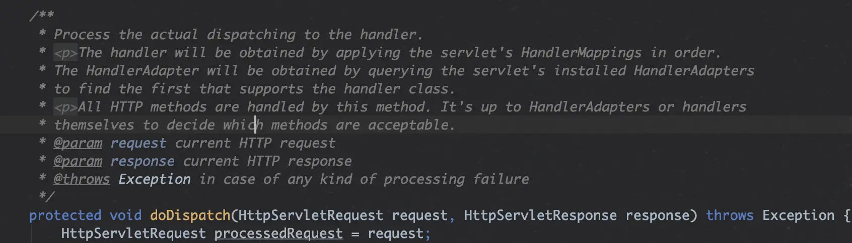 看一下**doDispatch()**的注释说明