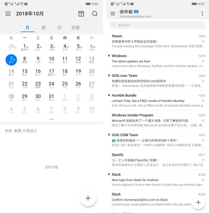 在这些系统应用中,EMUI 9 引入了 Google 官方推荐的 Floating Action Buttons 作为控件,将添加等重点操作统一摆放在界面右下角。