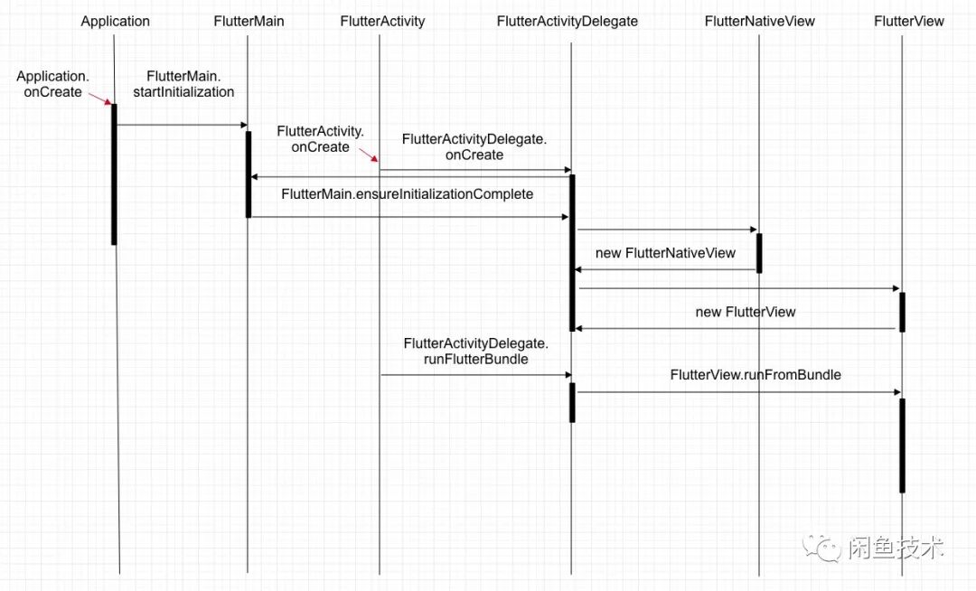 Flutter初始化主要分四部分,FlutterMain初始化、FlutterNativeView的初始化、FlutterView初始化和Flutter Bundle初始化。 我们先看下Flutter初始化的时序图,来整体把握下Flutter初始化的一般流程:
