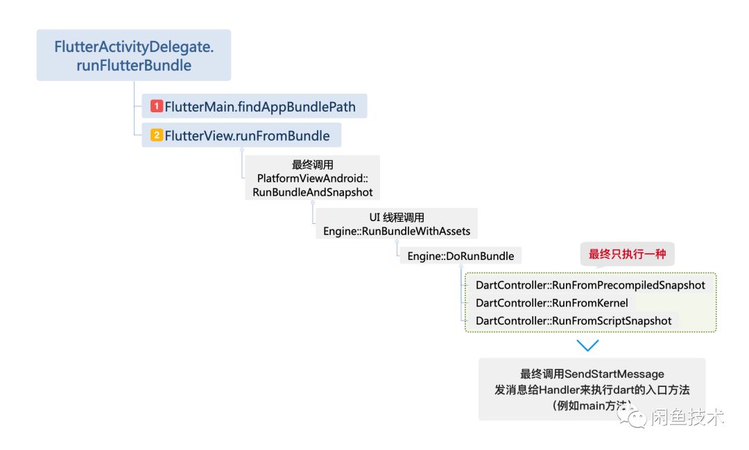 我们再从源码角度较为深入了解下:FlutterActivity的onCreate方法在执行完FlutterActivityDelegate的onCreate方法之后会调用它的runFlutterBundle方法。runFlutterBundle代码如下: