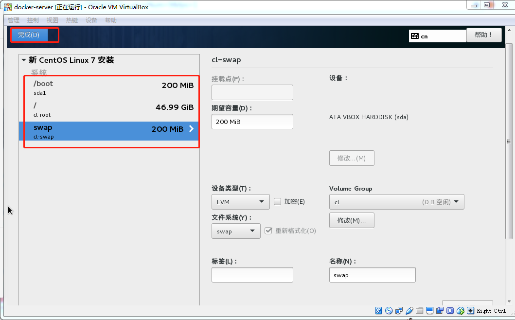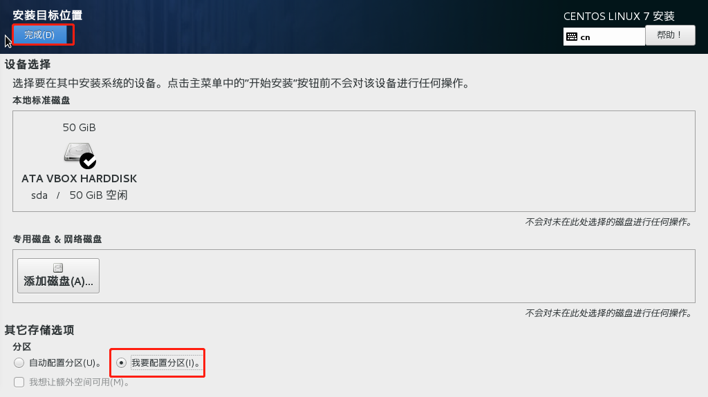 Oracle VM VirtualBox安装centos7 王小胖酱 2018-11-22 623 阅读1分钟 一、下载Oracle VM VirtualBox并安装一路next,centos7的安装镜像 二、开始安装centos7 1)、创建虚拟机选择专家模式 2)、选择VDI磁盘映像,点击下一步 3)、选择分配方式,点击下一步,设置虚拟硬盘大小,选择文件存放位置,点击创建,OK,虚拟机创建好了; 4)、点击设置 5)、勾掉软驱,将光驱调整为第一项 6)、配置两个网卡,一个是桥接网络,另一个是HOST-ONLY模式,选择桥接网络,wireless是当前网络为无线网,如果是有限网络注意选择,设置完点击ok 7)、接下来就是安装操作系统了 此步主要配置系统分区 其他设置注意红框语言支持和键盘设置,设置完成开始安装 完成之后重启即可