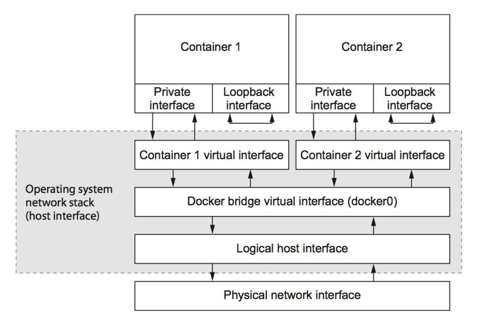 隔离网络栈,有自己的接口、路由、防火墙规则bridge