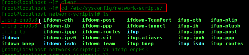 ①进入/etc/sysconfig/network-scripts目录,找到该接口的配置文件(ifcfg-enp0s3)