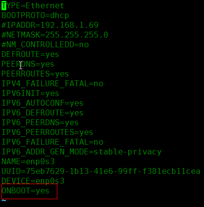 ②将ONBOOT=no修改为ONBOOT=yes