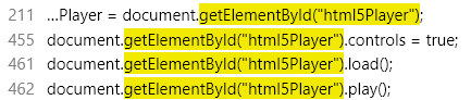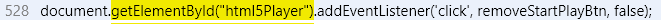 结果没有,只有一些css操作。看来是原生js操作了,接着搜索getElementById("html5Player")。