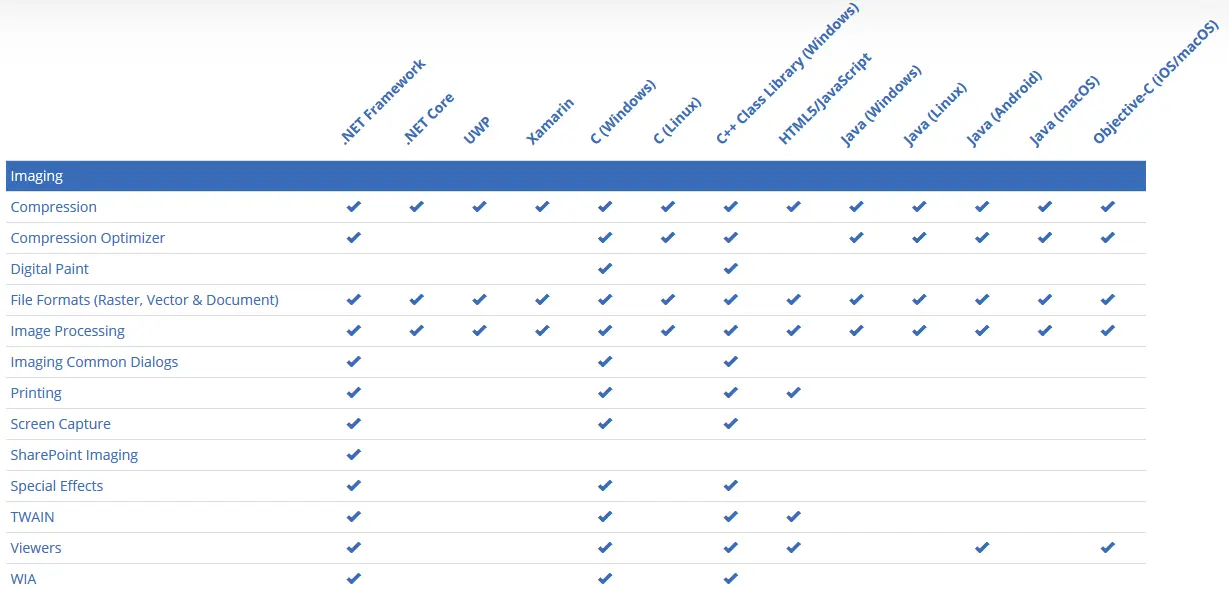 如果你还想看更多关于LEADTOOLS支持的所有平台的对比表,请点击这里查看。