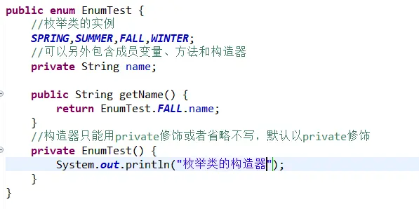 (3)枚举类的构造器只能用private修饰