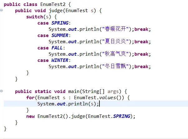 可以看出,在实例化枚举类的过程中,自动调用了枚举类的无参构造器。而values()方法返回的是一个枚举类型的数组,利用foreach方法很方便的遍历枚举类。