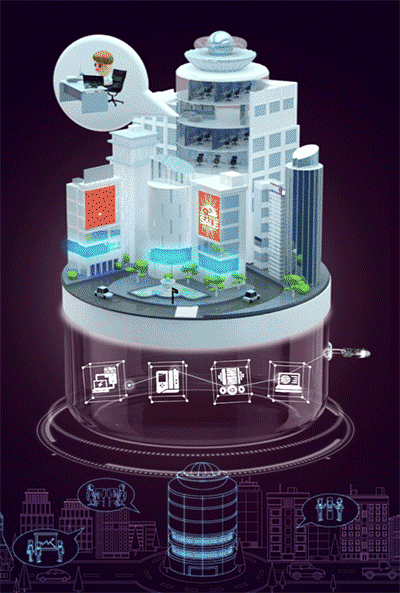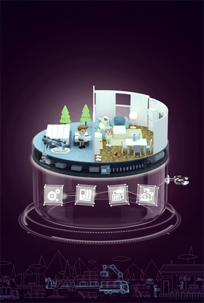 在最初的时候,我们主要考虑到西门子的业务是城市发展的幕后支撑,是不被大家看到的智慧。所以八音盒这个元素被我们看中,圆形的八音盒上面是展现的城市,下面是内里的运转。