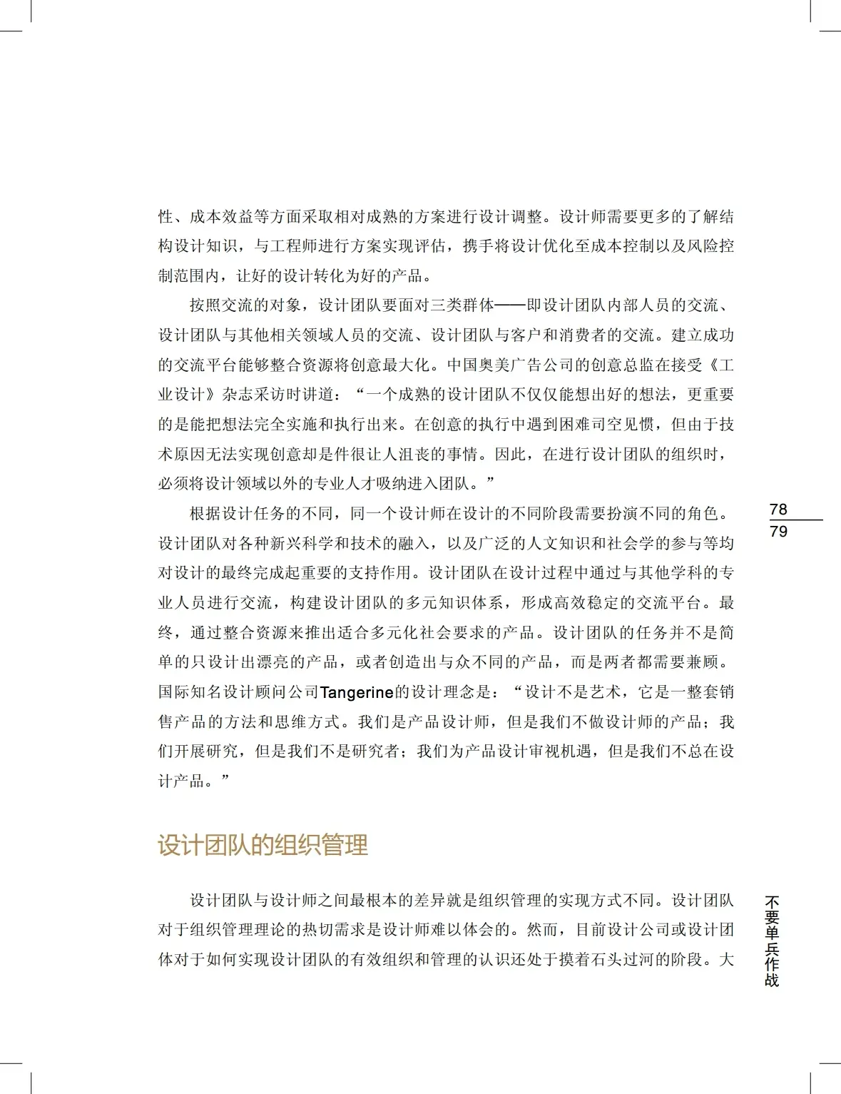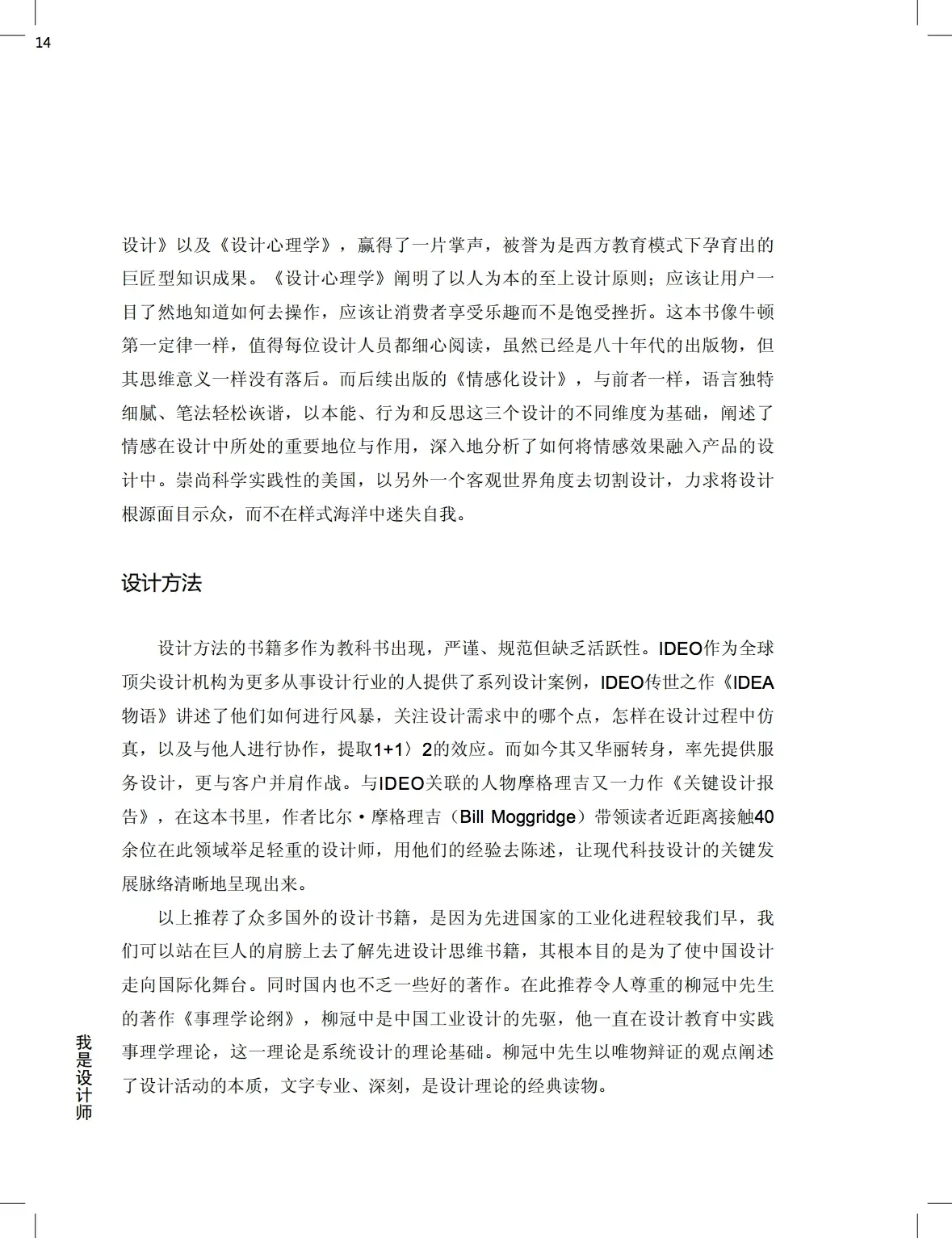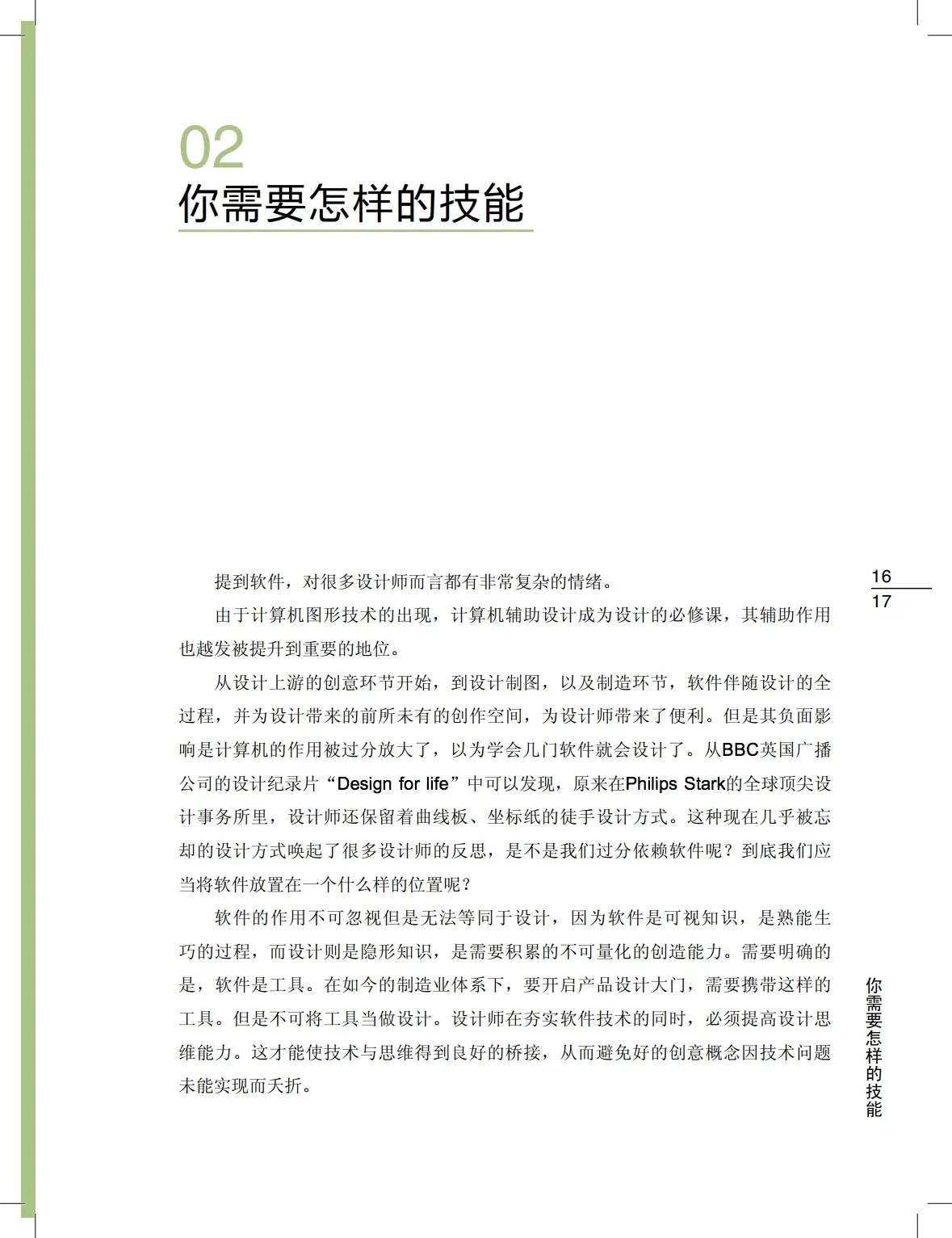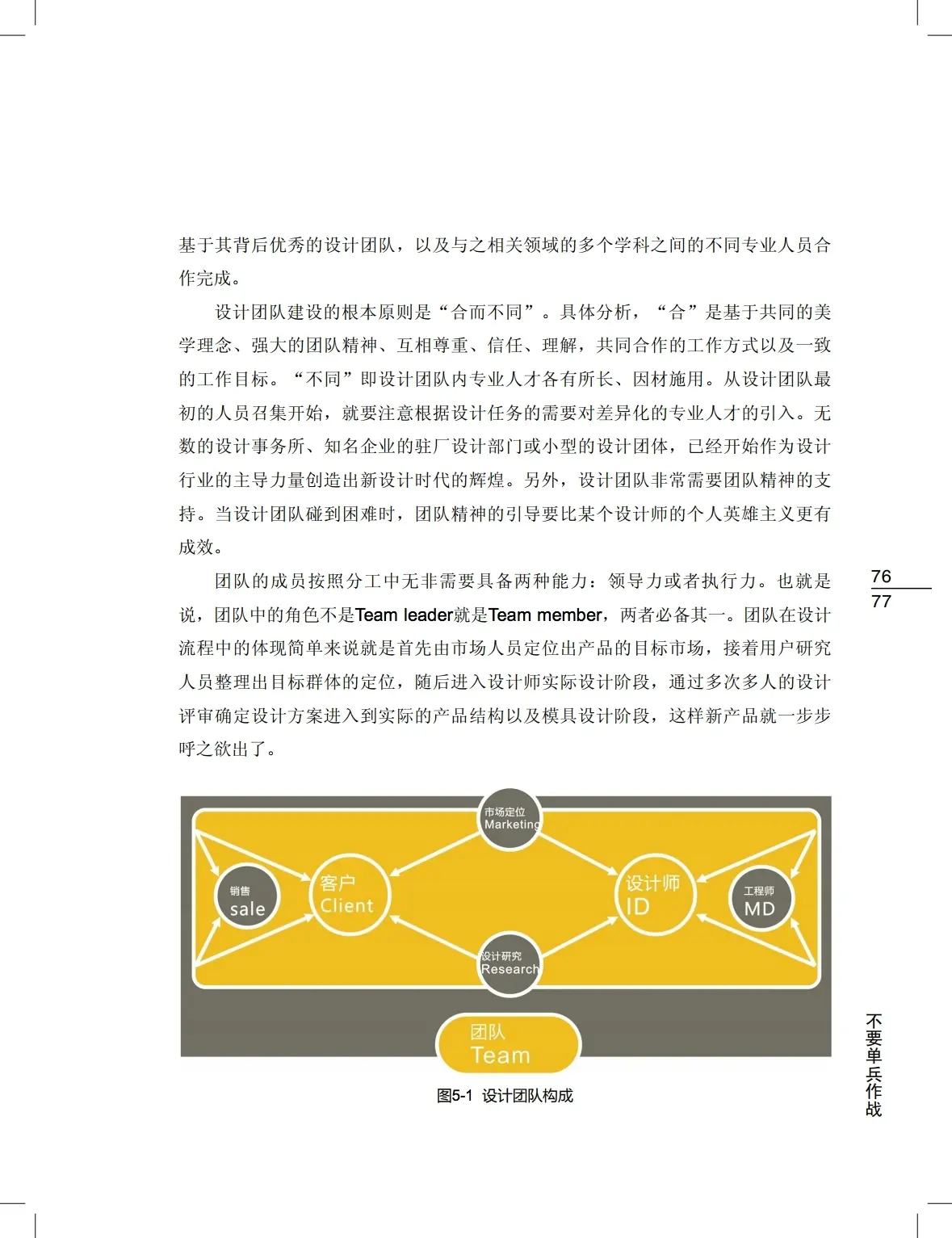 想要开始写这本书时,思路很不清晰,要说的话一个个蹦出来,不知道从哪儿开始写起。经过多次的调整,最后确定从最基本的设计基础开始,同时按照时间的顺序把思路屡清。直到这时对写书这件事情我还有疑虑:一是由于设计师的工作繁忙很难有大段完整的时间来静下心写作,二是由于我就是最普通的中国设计师,十分担心写出的内容能否成为对他人有价值的文字。我目前从事设计管理、产品设计和空间设计工作,为了让此书增加可读性和更具代表性。我邀请了资深的设计研究、交互设计师王蕾一同完成此书。鉴于我们涉猎的工作包含了很大部分的设计领域,所以得以用更宽广的视角来诠释如何作设计和如何作设计师。