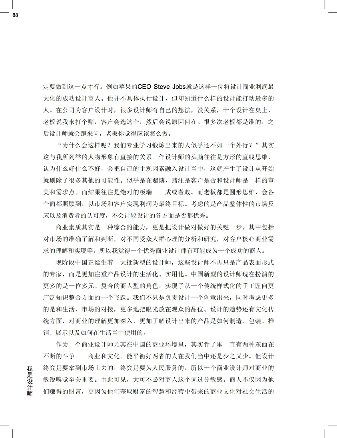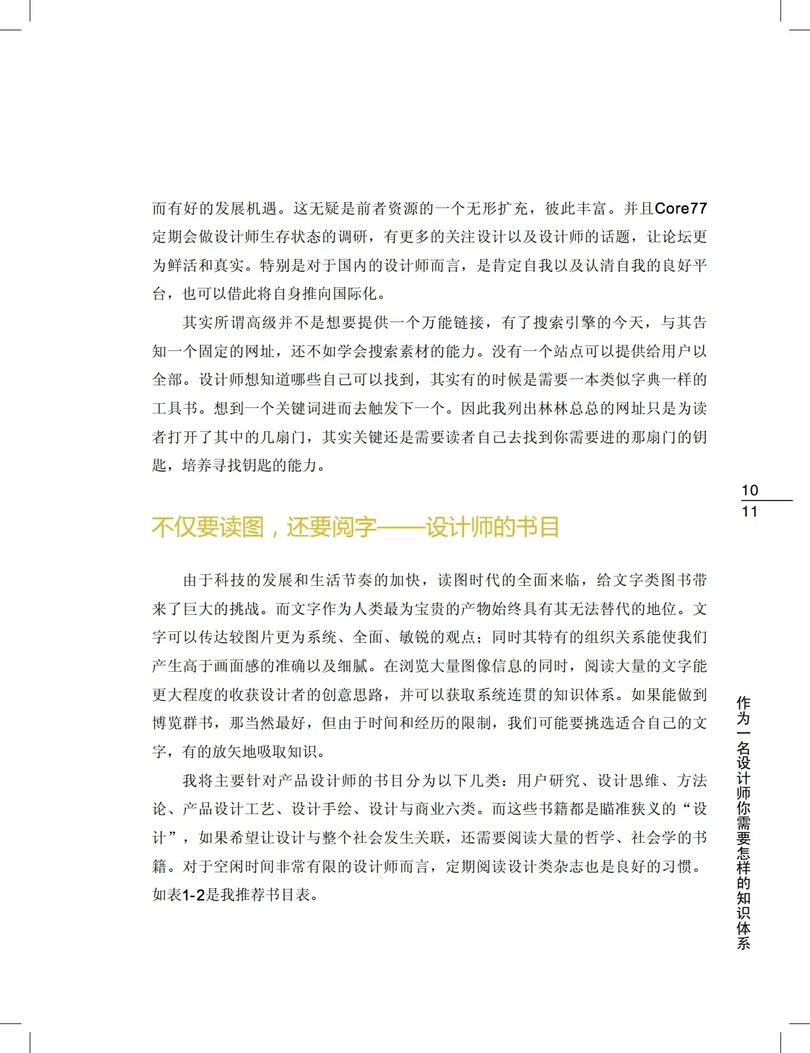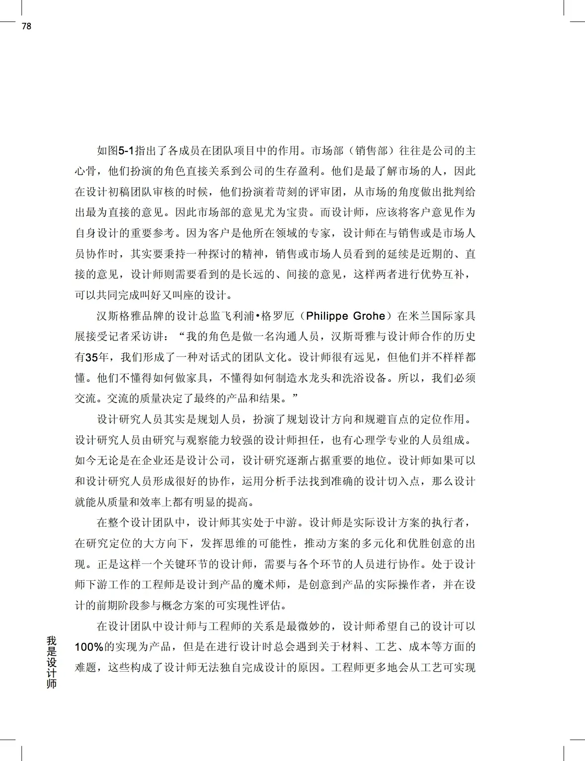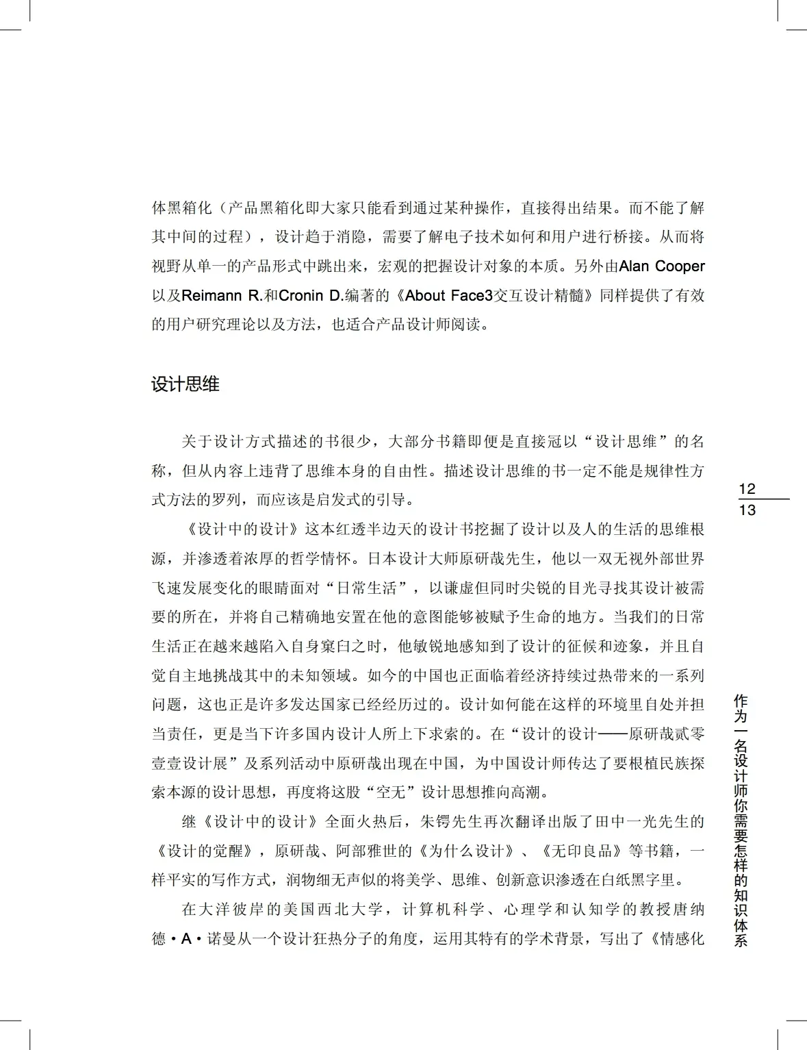 想要开始写这本书时,思路很不清晰,要说的话一个个蹦出来,不知道从哪儿开始写起。经过多次的调整,最后确定从最基本的设计基础开始,同时按照时间的顺序把思路屡清。直到这时对写书这件事情我还有疑虑:一是由于设计师的工作繁忙很难有大段完整的时间来静下心写作,二是由于我就是最普通的中国设计师,十分担心写出的内容能否成为对他人有价值的文字。我目前从事设计管理、产品设计和空间设计工作,为了让此书增加可读性和更具代表性。我邀请了资深的设计研究、交互设计师王蕾一同完成此书。鉴于我们涉猎的工作包含了很大部分的设计领域,所以得以用更宽广的视角来诠释如何作设计和如何作设计师。