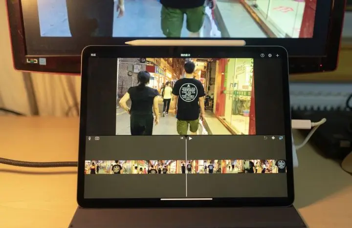这次新 iPad Pro 则支持以拓展的方式显示内容,例如在 iPad Pro 上使用 iMoive 进行剪辑时,你可以同时在外接显示器上预览剪辑中的视频。新款 iPad Pro 理论上可以输出 4K 分辨率的视频,但需要注意的是随 iPad Pro 附赠的 USB-C 数据线由于只支持 USB 2.0 的协议,因此不能实现该功能。如果有需要,你可以前往 苹果官网 购买一条价格 328 元的 Thunderbolt 3 数据线,或者其他能够支持 DisplayPort/HDMI 协议的 USB-C 线。