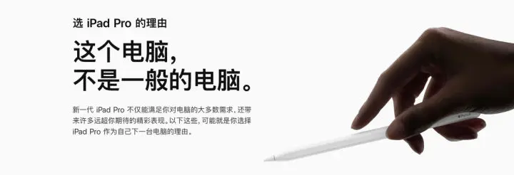 但苹果的计划远不止于此,它们不希望 iPad Pro 只是手机和电脑之间的「第三者」,他们想让它可以做更多事。如果你有留意这两年苹果在发布会上的用词,你会发现苹果在不断地强调 iPad Pro 相比传统电脑的优势,并告诉你它是台多么出色的「电脑」:它的处理器比大多数电脑都要快,它的屏幕比你的电脑素质高,它可以拿在手里而你的电脑只能放在桌上,它还有一支体验非常棒的手写笔……甚至苹果还专门在 官网 做了一个页面,告诉你为什么你应该选择 iPad Pro 作为你的「电脑」,而不仅仅是一台「平板」。