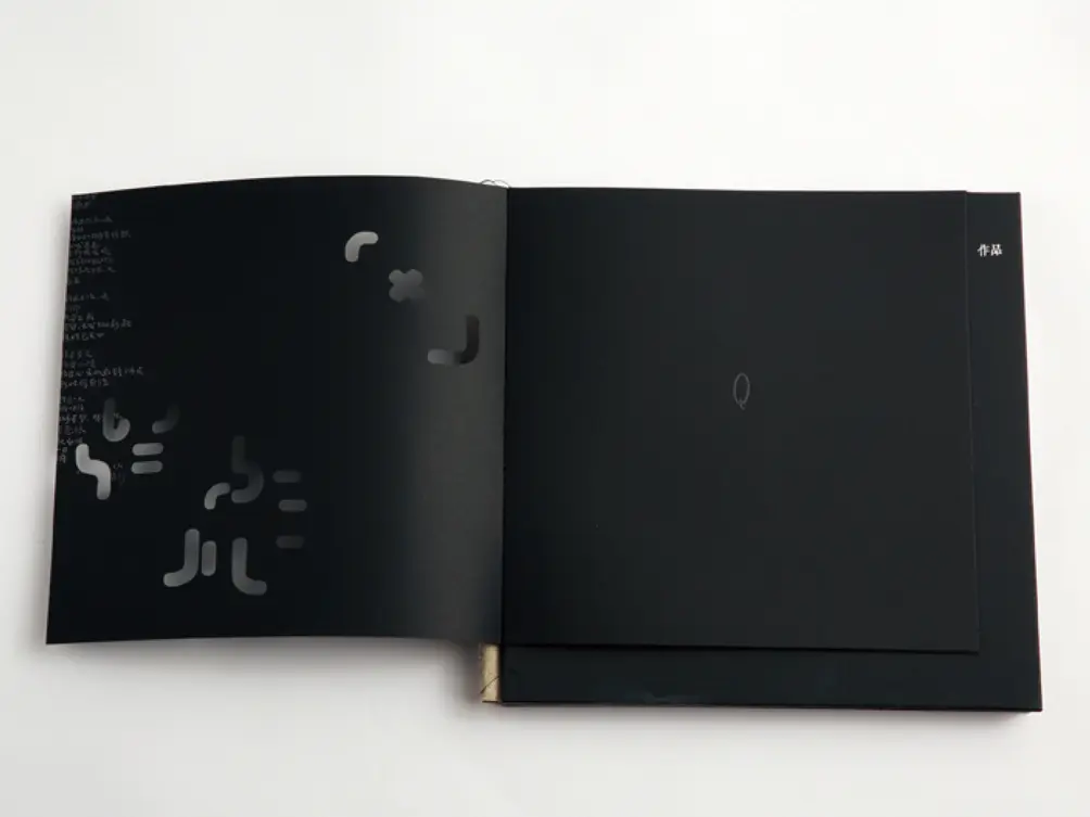 当我们翻开书时可以看到这本书其实是一个裸脊锁线装,但是翻开来为什么它是打不开的?本来裸脊锁线装是最容易打开的。但在里面却刻意的做了一个线装的形式。也就是说表面上看起来好像很容易打开,实际上却是比较难打开的这么一个状态,也呈现出一种很别扭的翻阅状态。