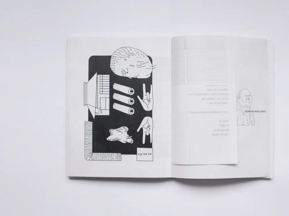 在这本书内容的规划上面刚好是比较平均的,因为这本作品分为几个层次,有几部分内容,所以用这么一个多样化开本的切割方式区分开来。它同样也在为读者阅读路径提供自由选择的机会。我觉得页面与页面之间,不仅仅是信息的链接,在个人可控的页面组合中,随着时间的推移呈现出来的状态也会随着翻阅去呈现不同的信息链接和序列的组合。我认为,这个翻阅路径同样也是设计师要考虑的范畴。