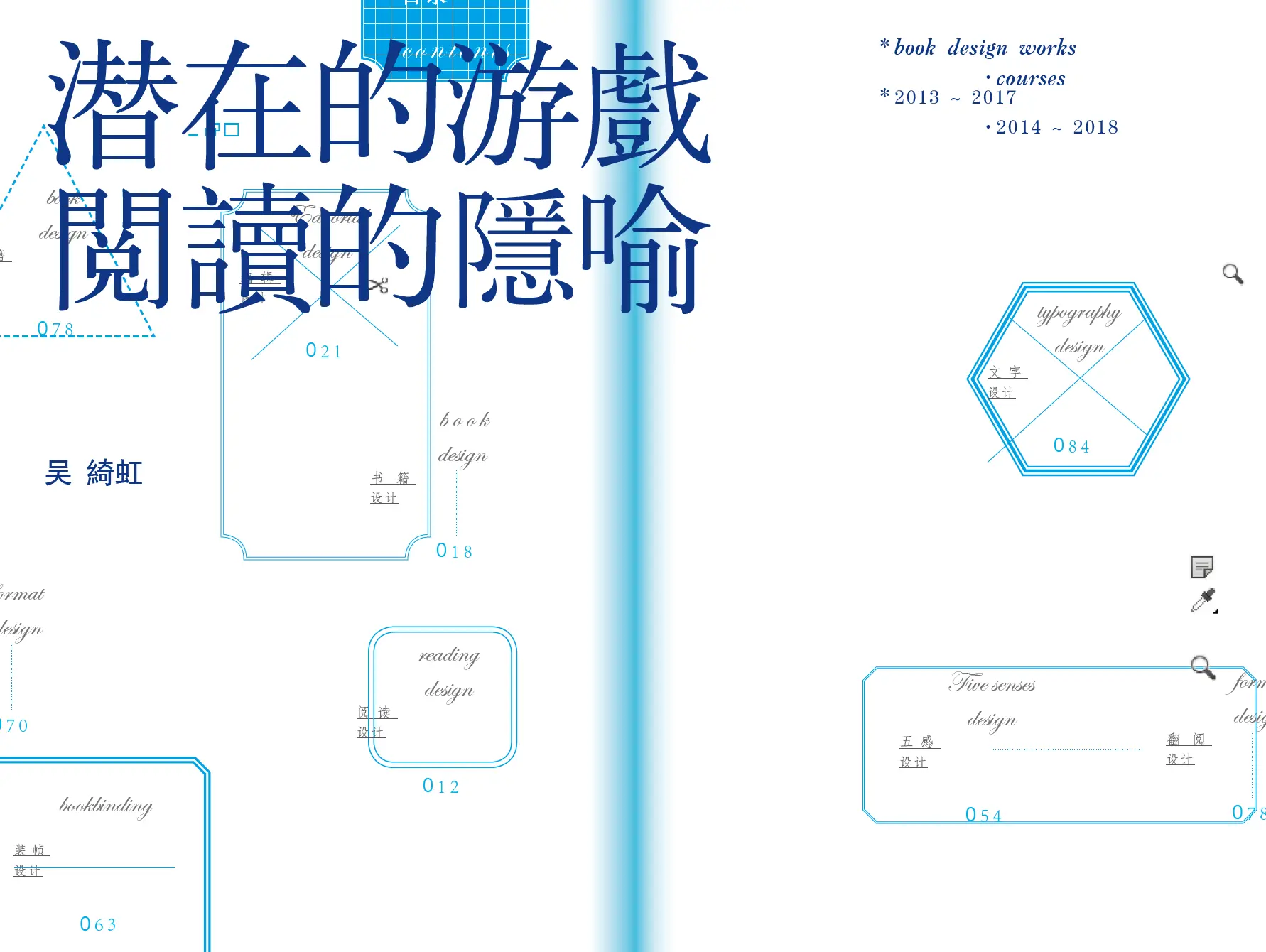 我是吴绮虹,我今天演讲主题是《潜在的游戏 阅读的隐喻》。我是一名设计师,同时我也是一名老师,所以我今天给大家分享的内容包括两方面,其一是我自己的书籍设计作品。其二是我在书籍设计课程中带着学生完成的一些作品。