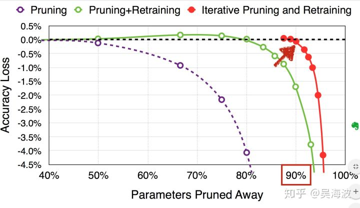其中关于参数Pruning的部分震惊到我了,一直以为Pruning个30-40%就能牛了,每想到业界给出来的是这个标准: