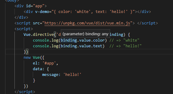 可以根据需求在不同的钩子函数内完成逻辑代码,例如上面的 v-focus,我们希望在元素插入 父节点时就调用,那用到的最好是 inserted。示例代码如下: