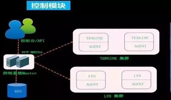上图为高性能负载均衡控制管理概要图,SLB产品也有SDN概念,转发和控制是分离的,用户所有配置通过控制台先到控制器,通过集中控制器转换将用户配置推送到不同设备上,每台设备上都有Agent接收控制器下发的需求,通过本地转换成LVS和Tengine能够识别的配置,这个过程支持热配置,不影响用户转发,不需要reload才能使新配置生效。