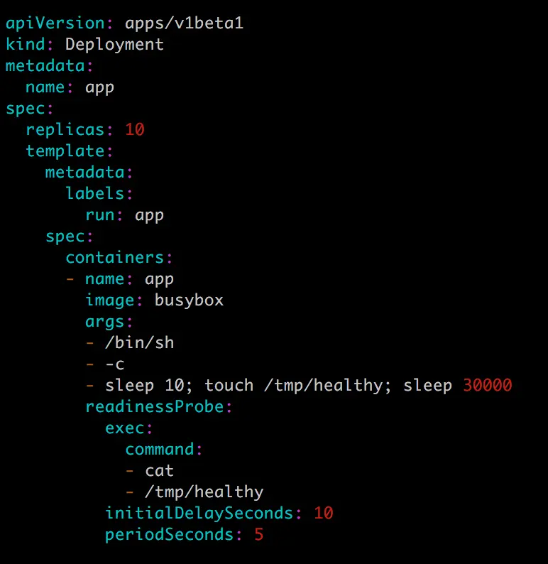 下面通过例子来实践 Health Check 在 Rolling Update 中的应用。