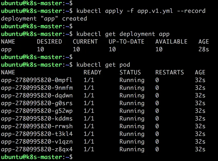 用如下配置文件 app.v1.yml 模拟一个 10 副本的应用: