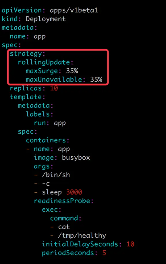 如果要定制 maxSurge 和 maxUnavailable ,可以如下配置: