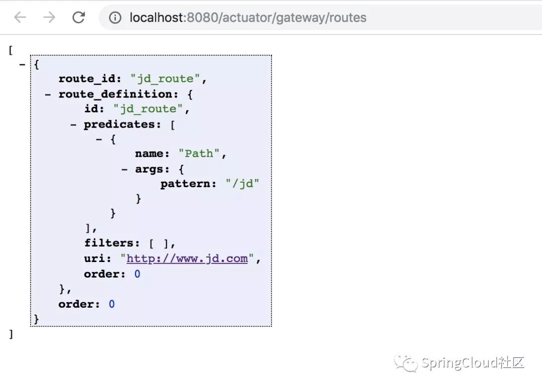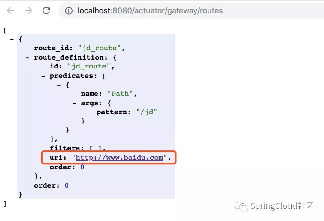 2.查看访问Spring Cloud gateway的端点配置,可以看到动态路由修改如下: