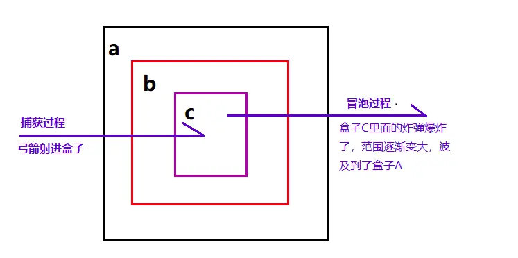 那么捕获和冒泡又是什么呢? 这是三个盒子,相互嵌套的关系